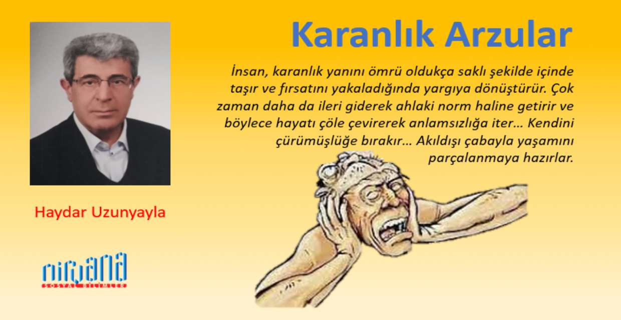 duyulan özlem - ki bu arzu atalarımızdan bize kalan tuhaf bir mirastır… İnsan karanlık yanını ömrü oldukça saklı şekilde içinde taşır ve fırsatını yakaladığında yargıya dönüştürür. Çok zaman daha da ileri giderek ahlaki norm haline getirir ve böylece hayatı çöle çevirerek anlamsızlığa iter… Kendini çürümüşlüğe bırakır. Çürür…