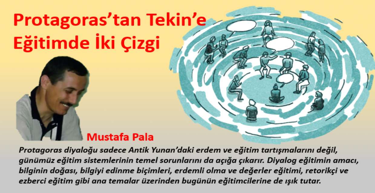 Platon’un Protagoras diyaloğu sadece Antik Yunan’daki erdem ve eğitim tartışmalarını değil, günümüz eğitim sistemlerinin temel sorunlarını da açığa çıkarır. Diyaloğun ana temaları olan erdem, bilgi ve eğitimin amacı, modern eğitim sistemlerindeki ayrışmalar ve tartışmalarla örtüşmektedir. İkili, ilk olarak bilginin doğası konusunda ayrışır: Protagoras’ın bilginin öznelliği savunusu, günümüz eğitim programlarına, postmodernizmden de güç alarak, bilginin değersizleştirilmesi biçiminde taşınır. Evrim kuramı gibi bilimsel içeriklerin çıkarılıp müfredatın dinsel içeriklerle doldurulması, tarikat ve cemaatlerin eğitim politikalarına ortak edilmesi, bunun ülkemizdeki yansımalarının örnekleridir. Sokrates bunun karşısına bilginin evrensel ve nesnel olduğu biçiminde ‘laik’ vurguyla çıkar.