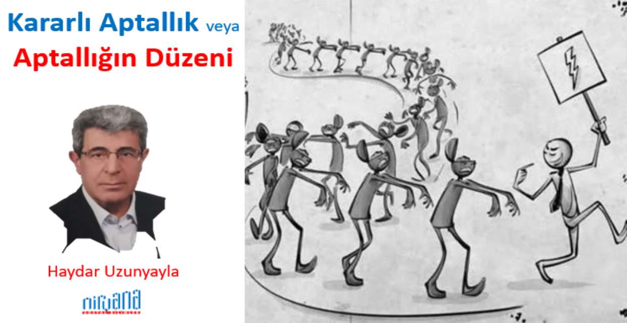 Şimdi diyeceksiniz ki her şey bu kadar basit mi? Evet… Aptallığın kendisi basit bir şey ve düzenin aptallığa ihtiyacı vardır. Bu yönünü görmek için geçmiş ile bugün arasında bir analiz köprüsü kurduğumuzda, olup bitenleri ve nedenlerini rahatlıkla görebiliriz. Savaşları, kışkırtılan arzuları, futbol yarışmalarını, vaatleri, tapınma ritüellerini, efendi-köle ilişkilerini incelediğimizde, aptallığın kendine özgü bir dilinin ve kimliğinin olduğunu görebiliriz… Ve bu yapı içinde eğitimli-eğitimsiz geniş bir kesimin aynı potada yuvarlandığına da tanık oluruz.