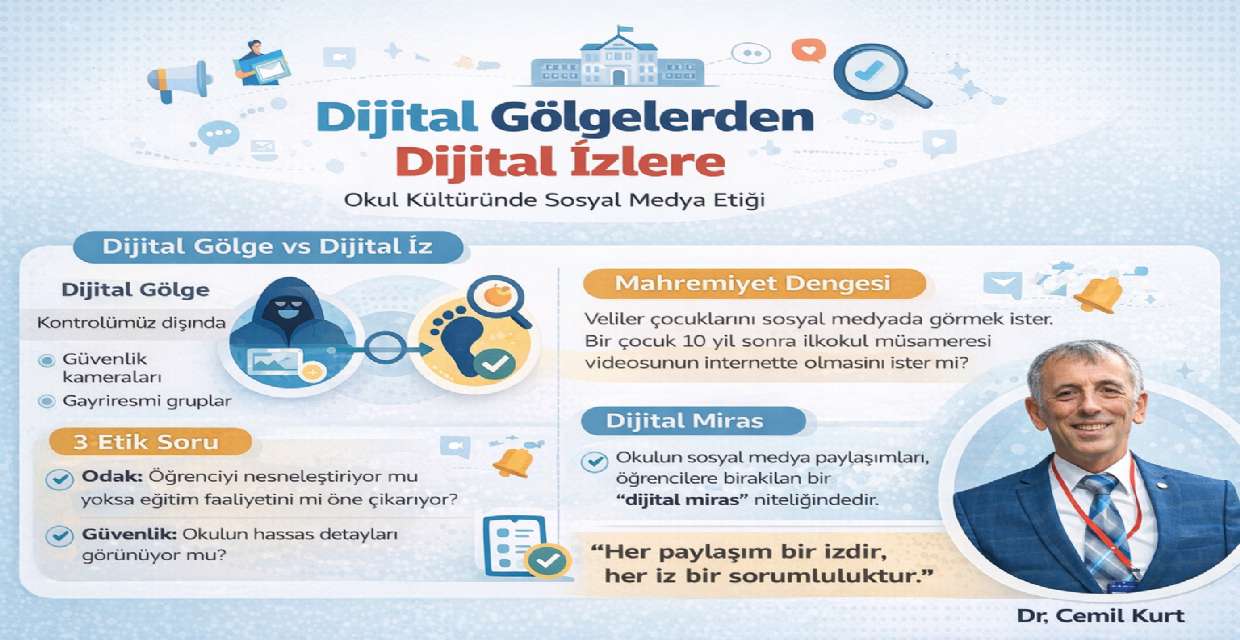 Okul yöneticileri ve öğretmenler, dijital gölgeleri tamamen kontrol edemeyebilir; ancak dijital izleri bilinçli bir şekilde yönetebilir. Bu noktada sosyal medya, yalnızca bir tanıtım aracı değil; aynı zamanda bir eğitim materyali, bir değer aktarım alanı ve bir kültür taşıyıcısı olarak ele alınmalıdır.